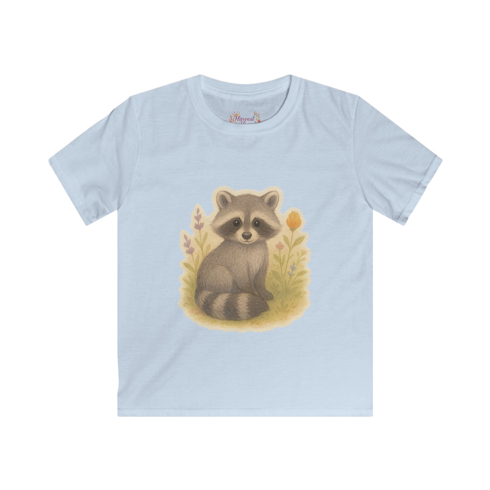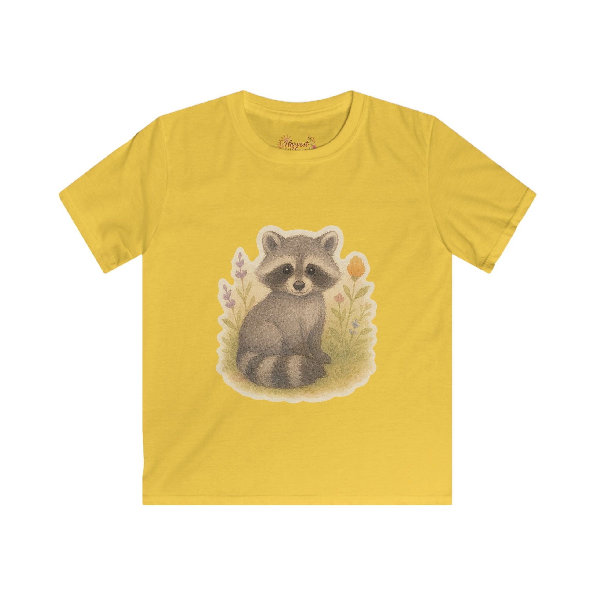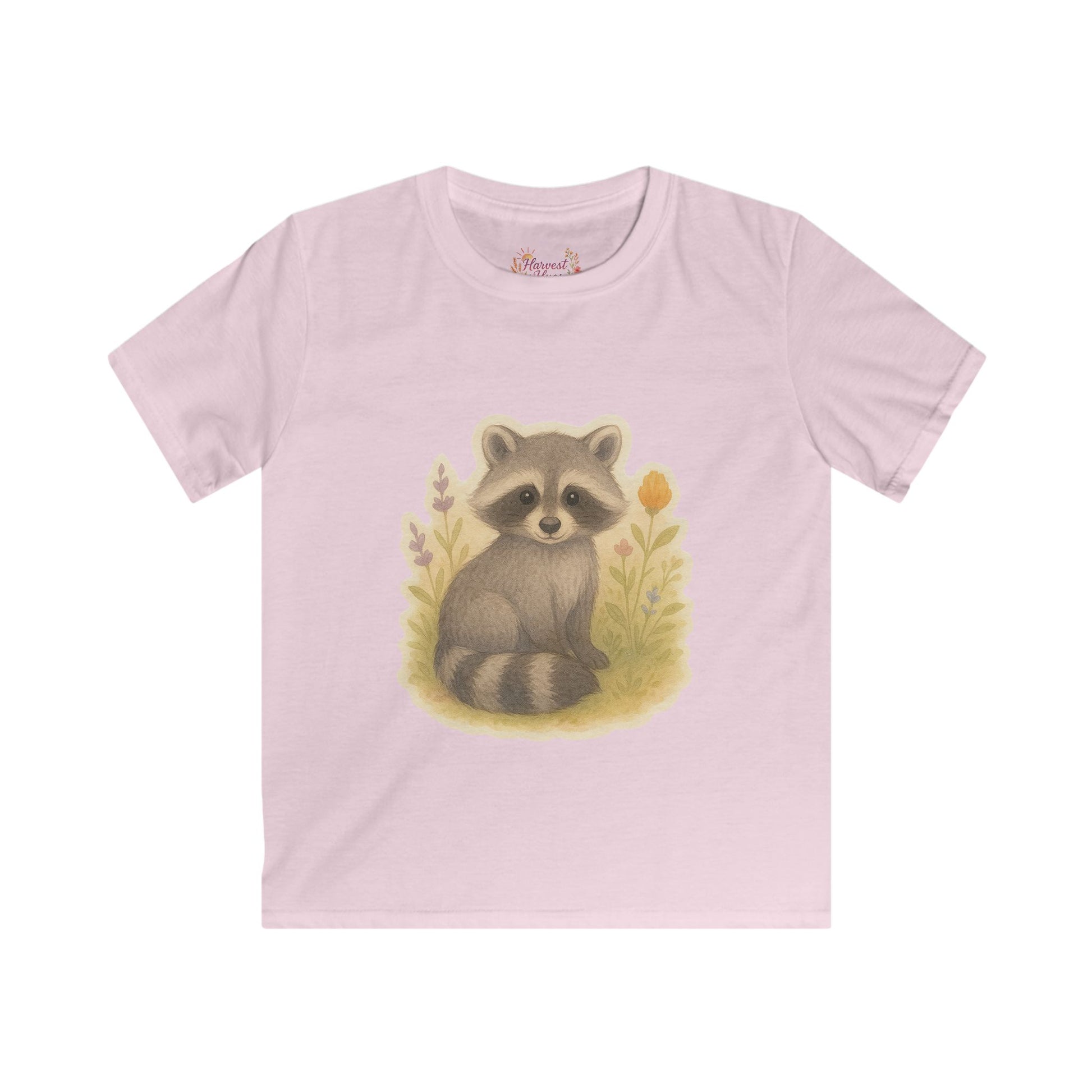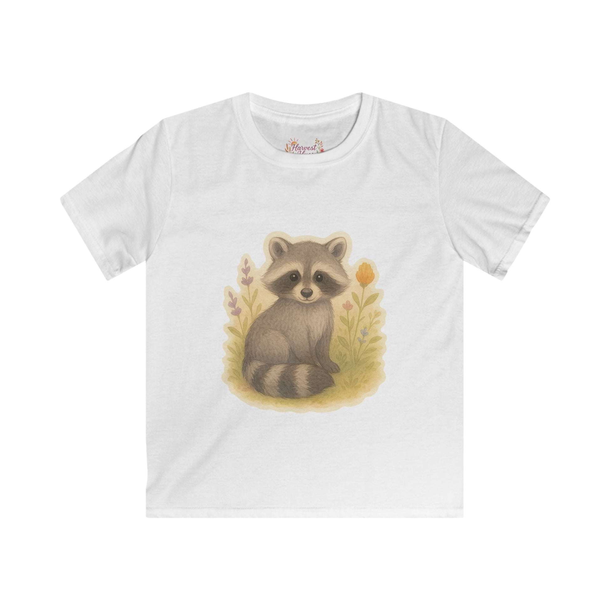 Adorable Raccoon Kids Softstyle Tee, Cute Animal Shirt, Children's Graphic Tee, Fun Playwear, Birthday Gift, Everyday Comfort