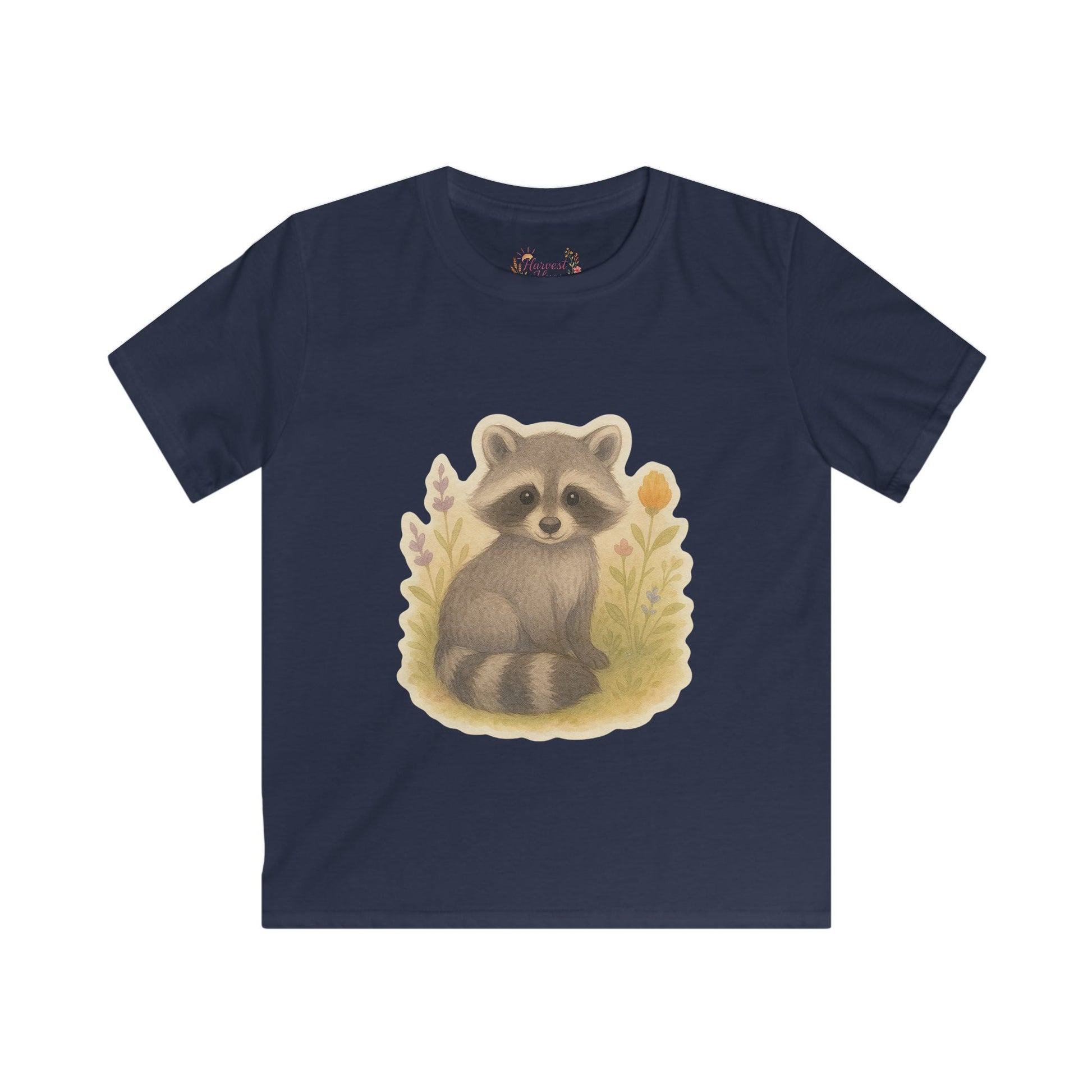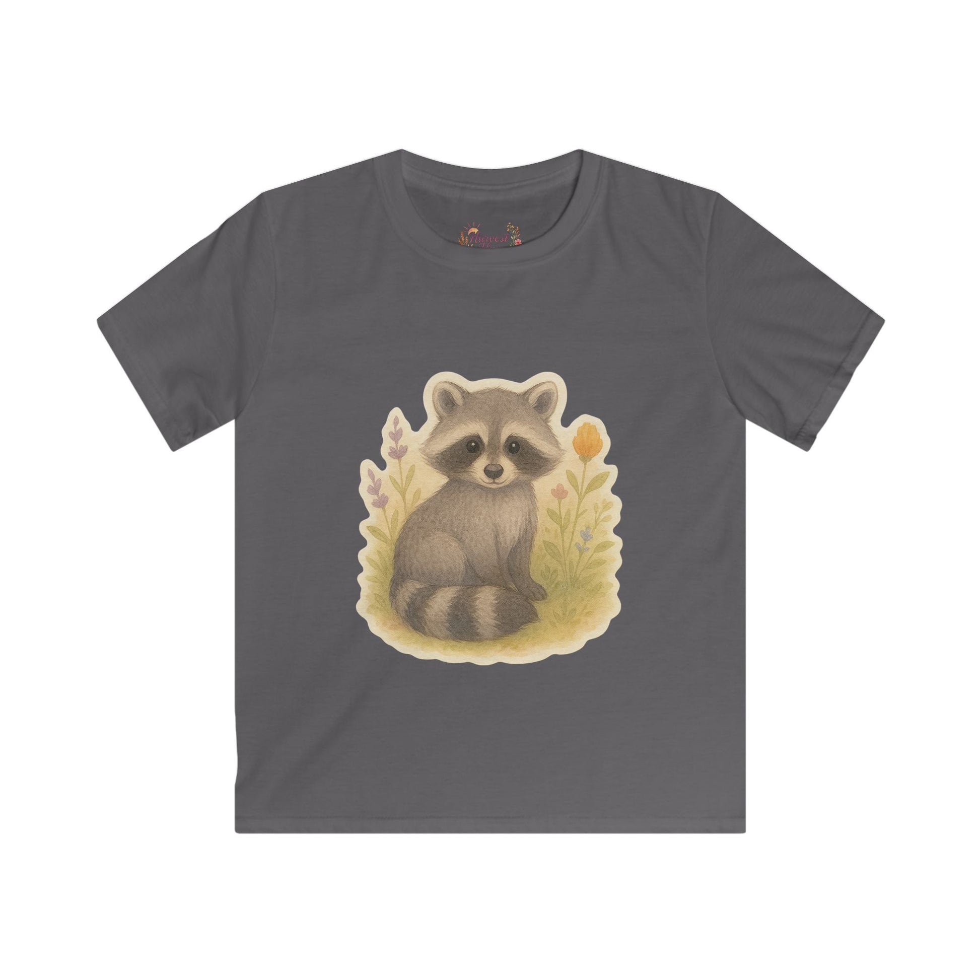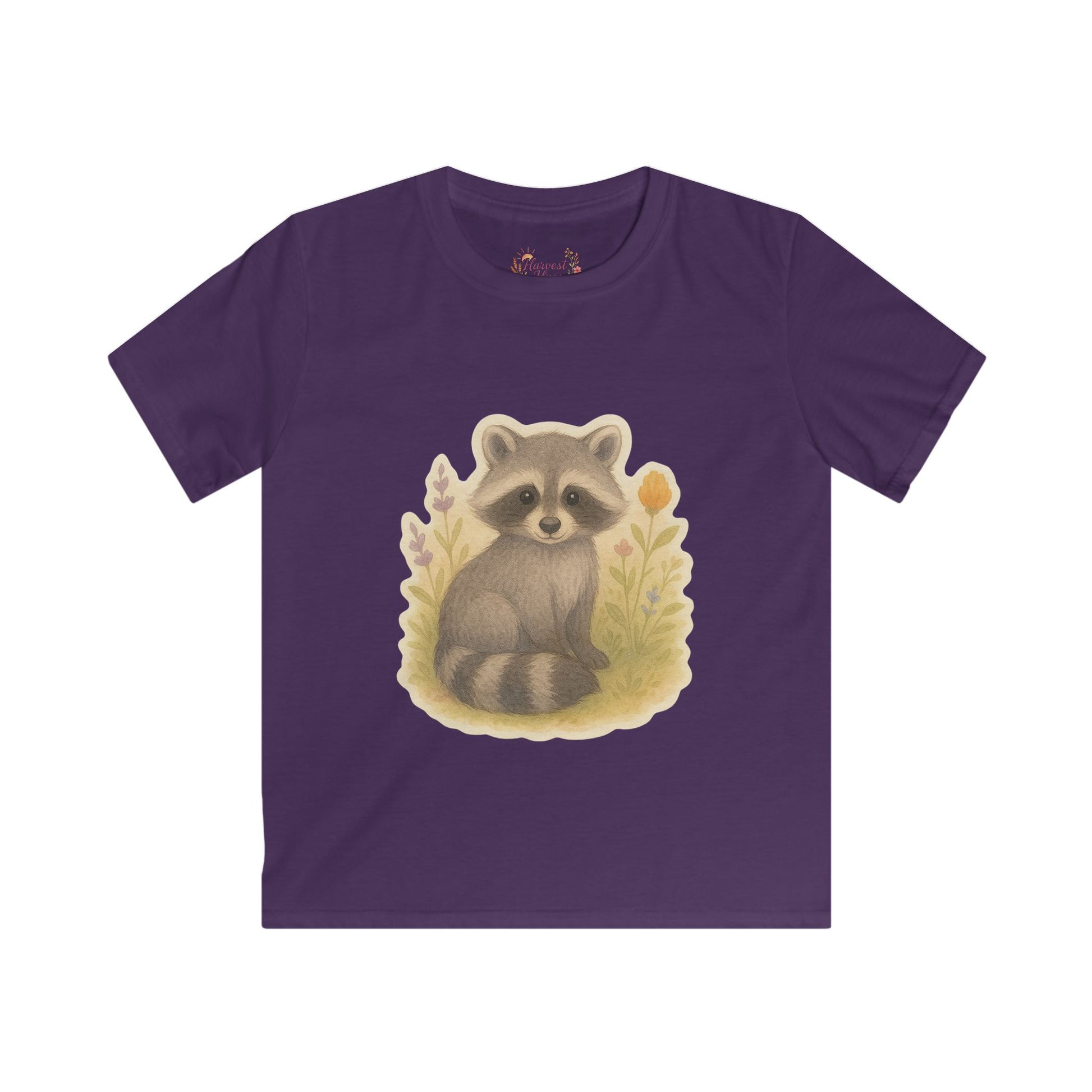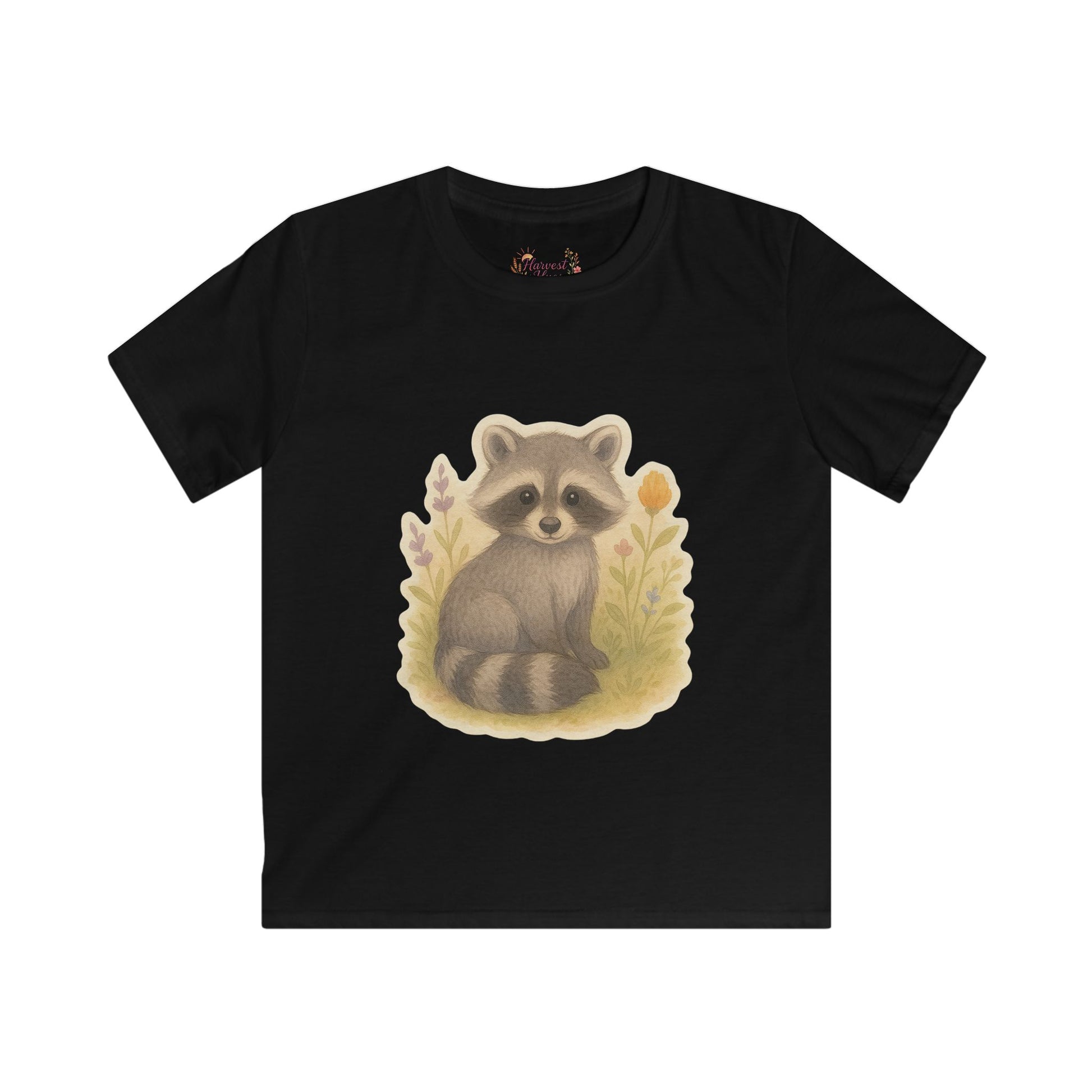 Adorable Raccoon Kids Softstyle Tee, Cute Animal Shirt, Children's Graphic Tee, Fun Playwear, Birthday Gift, Everyday Comfort